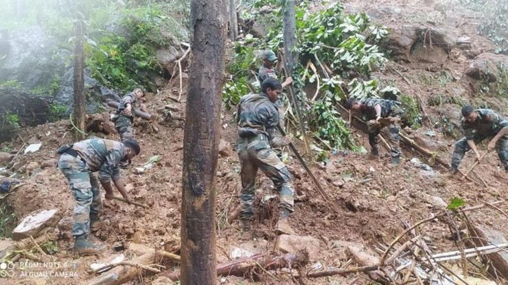 கூட்டிக்கல் மலை கிராமத்தில் மழை வெள்ளத்தைத் தொடர்ந்து ஏற்பட்ட நிலச்சரிவில் சேதம் அடைந்த வீடுகளில் இருந்தவர்களை மீட்க இந்திய ராணுவத்தின் மெட்ராஸ் ரெஜிமன்ட் வீரர்கள் பணியில் ஈடுபடுத்தப்பட்டுள்ளனர். அரபிக் கடலில் நேற்று ஏற்பட்ட குறைந்த காற்றழுத்தத்துக்குப் பிறகு இரண்டு அல்லது மூன்று மேக வெடிப்புகள் ஏற்பட்டது. அதைத்தொடர்ந்து மழை வெள்ளம் தீவிரம் அடைந்துள்ளது. இங்கு தீவிரம் அடைந்துள்ள மழைப்பொழிவு அசாதாரணமாக கருதப்படுகிறது. காரணம், இது தென்மேற்கு பருவமழைக்காலம் முடிவதற்கும் வடமேற்கு பருவமழை தொடங்குவதற்கும் இடையே ஏற்பட்டுள்ளது. தொடர்ந்து கனமழை பெய்துவருவதால் மீட்புப் பணிகள் இரவில் பாதிக்கப்பட்டன.