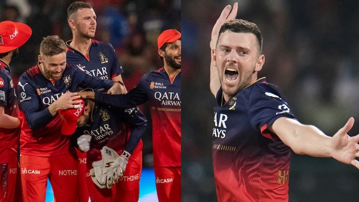 புவனேஷ்வர் குமார் வீசிய 18 ஆவது ஓவரில் 22 ரன்கள் சேர்க்கப்பட்டது. இதன் காரணமாக கடைசி இரண்டு ஓவர்களில் 18 ரன்கள் மட்டுமே ராஜஸ்தான் அணிக்குத் தேவைப்பட்டது. இதையடுத்து 19 ஆவது ஓவரை வீசவந்த ஹேசில்வுட் ஒரே ஒரு ரன் மட்டும் கொடுத்து துருவ் ஜூரெல் மற்றும் ஜோஃப்ரா ஆர்ச்சர் ஆகியோர் விக்கெட்களையும் வீழ்த்தினார். இந்த ஓவர்தான் ஆட்டத்தின் போக்கையே மாற்றியது. அதன் பிறகு யாஷ் தயாள் 20 ஆவது ஓவரை சிறப்பாக வீசி 5 ரன்கள் மட்டும் விட்டுக் கொடுத்து வெற்றியை உறுதி செய்தார். இந்த சிறப்பான பந்துவிச்சுக்காக ஹேசில்வுட் ஆட்டநாயகனாகவும் அறிவிக்கப்பட்டார்.