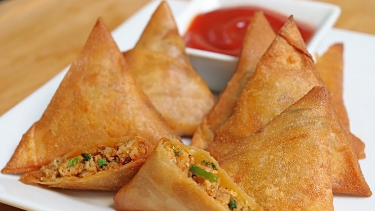 பின் அதனை சமோசா வடிவில் மடித்து அதில் சிறிது மசாலாவை வைத்து ஒட்டி விடவும். சமோசாக்களை எண்ணெய்யில் போட்டு பொரித்து எடுத்தால் சுவையான சிக்கன் சமோசா தயார்.