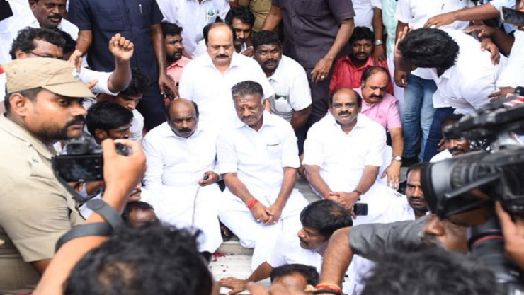 இந்த நிலையில் தன்னை நீக்குவதற்கு எடப்பாடி பழனிச்சாமிக்கு அதிகாரம் இல்லை என்று கூறி அதிமுக அலுவலகம் முன் ஓபிஎஸ் திடீரென தர்ணா போராட்டத்தில் ஈடுபட்டுள்ளார். இதனால் அந்த பகுதியில் பெரும் பரபரப்பு ஏற்பட்டுள்ளது. இந்த நிலையில் அதிமுக அலுவலகம் அருகே போலீஸ் பாதுகாப்பு அதிகரிக்கப்பட்டுள்ளது என்பது குறிப்பிடத்தக்கது