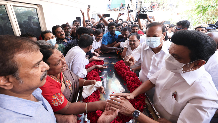 இந்த நிலையில் சற்று முன் தமிழக முதல்வர் மு க ஸ்டாலின் விஜயகாந்த் இல்லத்திற்கு சென்று நேரில் அஞ்சலி செலுத்தினார். அப்போது பிரேமலதா விஜயகாந்த் அவரிடம் விஜயகாந்த் உடலை பொது இடத்தில் அடக்கம் செய்ய கோரிக்கை விடுத்ததாக கூறப்படுகிறது. முதல்வர் என்ன முடிவு எடுப்பார் என்பது குறித்து தகவல் இன்னும் சில நிமிடங்களில் வெளியாகும் என்று எதிர்பார்க்கப்படுகிறது.