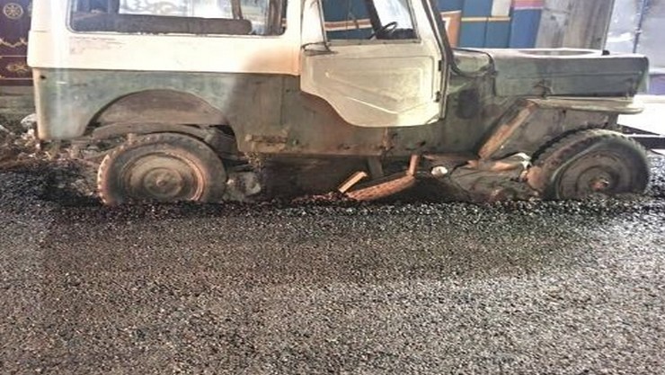 அதை தொடர்ந்து இரவோடு இரவாக அங்கு போடப்பட்ட சாலை அகற்றப்பட்டதுடன், சாலை காண்ட்ராக்ட் எடுத்தவரின் ஒப்பந்தமும் ரத்து செய்யப்பட்டது. இந்நிலையில் வேலூர் மாநகராட்சியின் பொன்னியம்மன் கோவில் தெருவில் நிறுத்திவைக்கப்பட்டிருந்த ஜீப்பை அப்புறப்படுத்தாமல் அதன் டயர்களை மூடும் வகையில் சாலை அமைக்கப்பட்டுள்ளது. இந்த புகைப்படங்கள் தற்போது சமூக வலைதளங்களில் வைரலாகியுள்ளது.