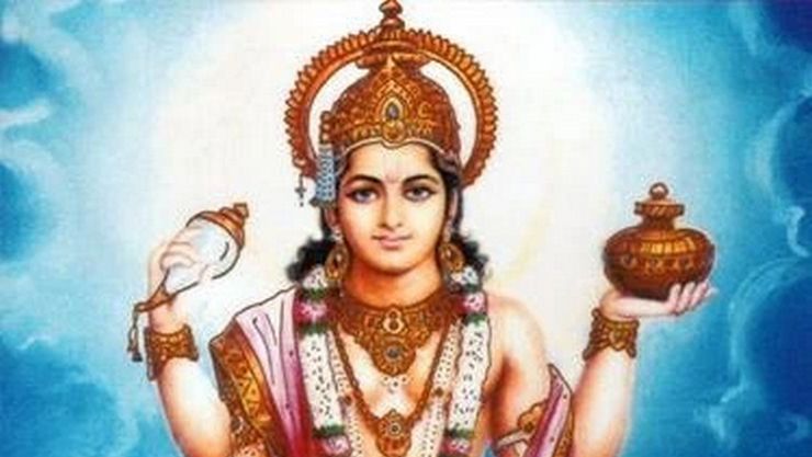 காக்கும் கடவுளான ஸ்ரீ தன்வந்திரி பெருமாள், மஹா விஷ்ணுவின் அம்சமாக பின்னிரு கரங்களில் சங்கு, சக்கரத்துடனும்,முன்னிரு கரங்களில் ஒரு கரத்தில் அமிர்த கலசத்தையும், ஒரு கையில் சீந்தலைக் கொடியுடனும் காட்சி அளிக்கிறார்.