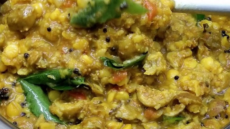 அடுத்து அதில் இடித்த பூண்டு, நறுக்கிய பச்சைமிளகாய், உப்பு சேர்த்து வதக்கவும். பின்பு அதில் பயத்தம்பருப்பு, அத்திக்காய் சேர்த்து வதக்கி 1 டம்ளர் தண்ணீர் சேர்த்து குக்கரை மூடி 2 விசில் வரும்வரை வேக விட்டு இறக்கவும்.