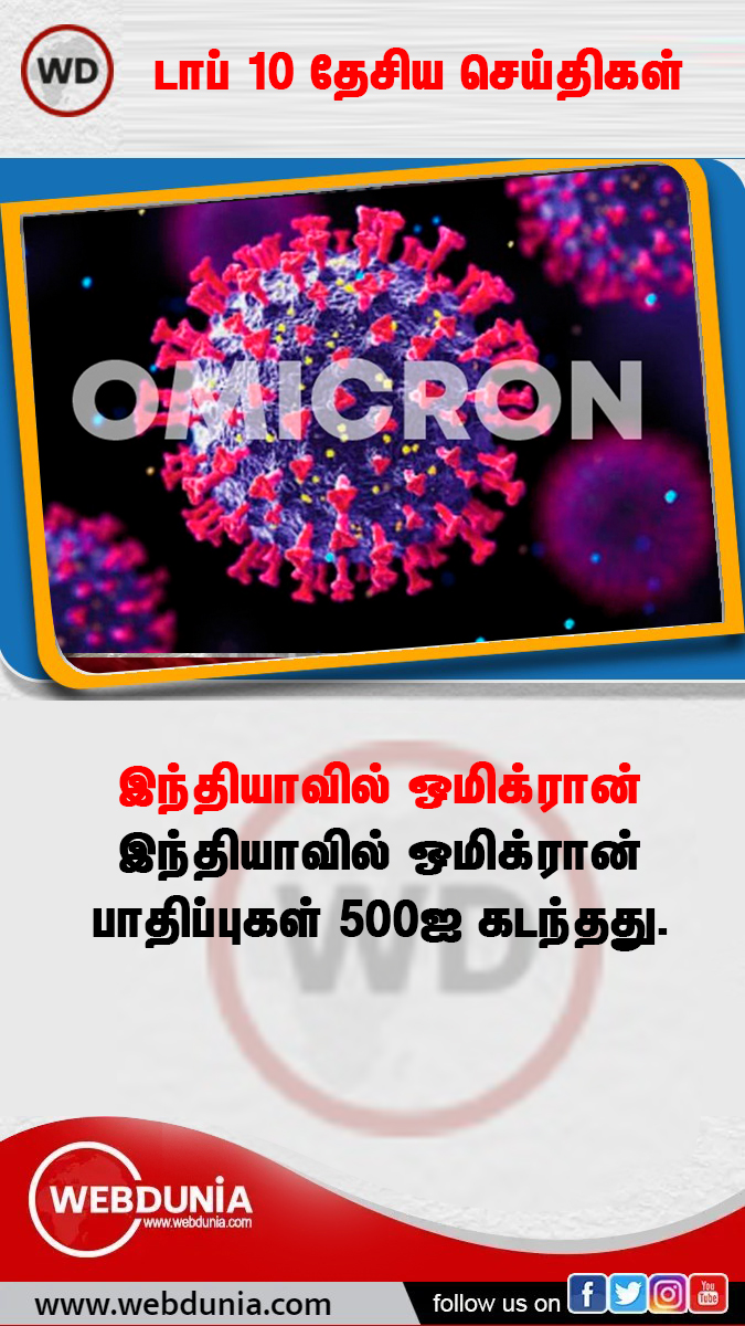 தென் ஆப்பிரிக்காவிலிருந்து கொரோனாவின் வீரியமடைந்த வேரியண்டான ஒமிக்ரான் உலக நாடுகளில் பரவியது. இந்தியாவிலும் பல மாநிலங்களில் ஒமிக்ரான் பரவ தொடங்கியுள்ள நிலையில் பாதிப்பு எண்ணிக்கை 500ஐ தாண்டியுள்ளது. இதனால் பல மாநிலங்களில் கட்டுப்பாடுகள் தீவிரப்படுத்தப்பட்டுள்ளன.