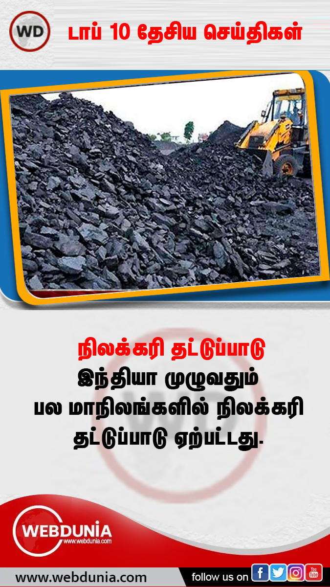 இந்தியாவில் பல்வேறு மாநிலங்களில் செயல்பட்டு வரும் நிலக்கரி சுரங்கங்களில் நிலக்கரி பற்றாக்குறை ஏற்பட்டது. இதனால் அனல்மின் நிலையங்களுக்கு தேவையான நிலக்கரிகள் கிடைப்பதில் சிக்கல் ஏற்பட்டதால், மின்சார உற்பத்தியும் பாதிக்கப்பட்டது.