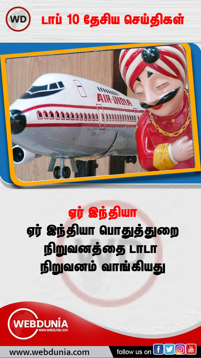இந்திய அரசின் பொதுத்துறை நிறுவனமான ஏர் இந்தியா நிறுவனம் நஷ்டம் காரணமாக தனியாருக்கு ஏலத்திற்கு விடப்பட்டது. நீண்ட நாட்களாக ஏலத்தில் பெரும் நிறுவனங்கள் ஆர்வம் காட்டாத சூழலில் ஏர் இந்தியாவை டாடா நிறுவனம் ரூ.18,000 கோடி மதிப்பிற்கு, கடன்களுடன் வாங்கியது.