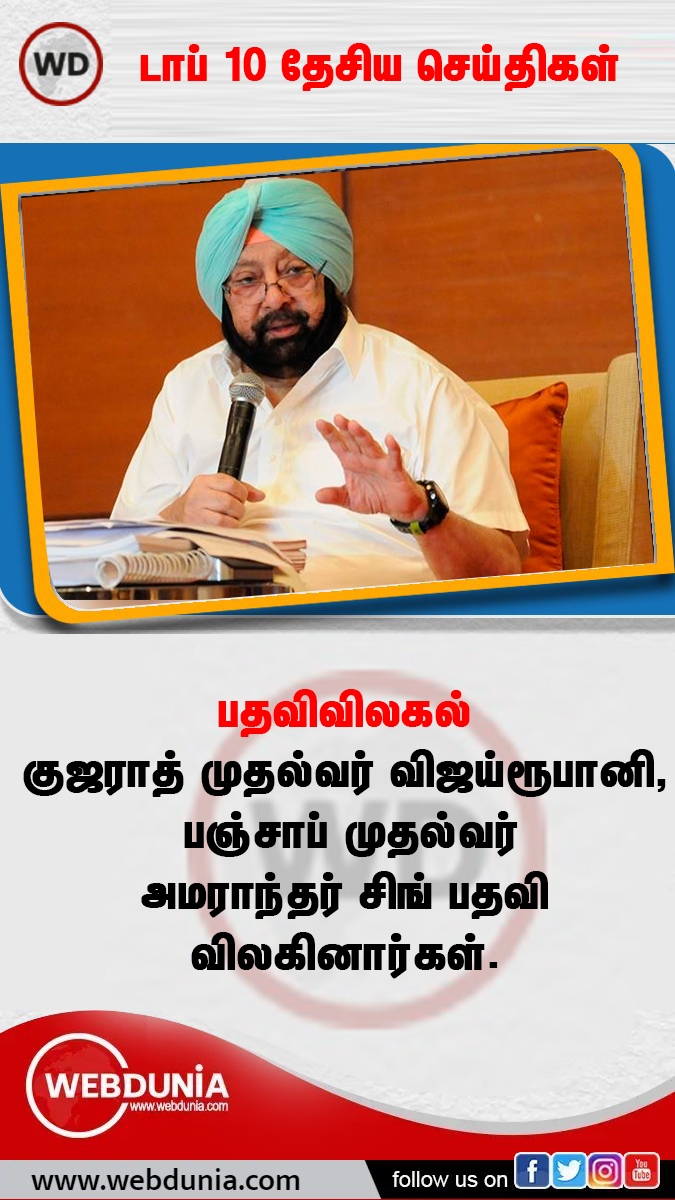 பஞ்சாபில் முதல்வராக பதவி வகித்த அமரீந்தர் சிங் பதவி விலகியதோடு, காங்கிரஸ் கட்சியிலிருந்தும் விலகினார். குஜராத் முதல்வராக பதவி வகித்த விஜய் ரூபானி பதவி விலகினார். கர்நாடகாவில் எடியூரப்பா பதவி விலகினார்.