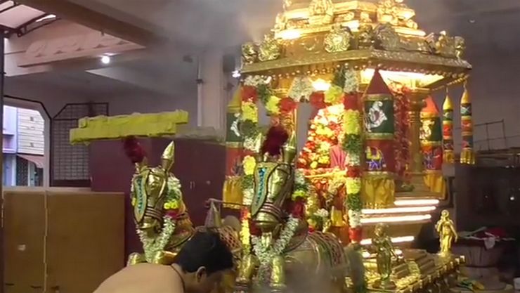 கரூர் மாரியம்மனுக்கு தங்கத்தேர் இழுத்த பக்தர்கள்!!