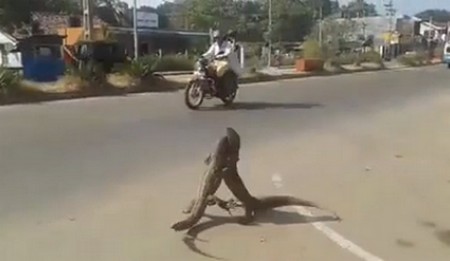 நடுரோட்டில் கட்டிப் புரண்டு சண்டை போட்ட உடும்புகள் : வீடியோ